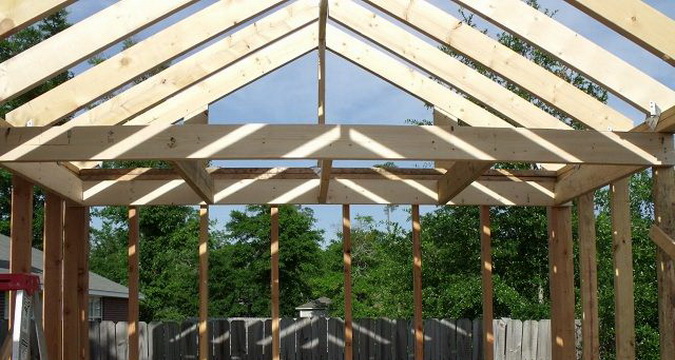 Как показано на фото, каркас для хозпостройки своими руками состоит из шести обычных и пяти стропильных секций: