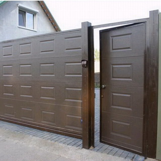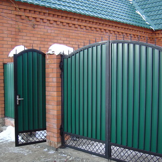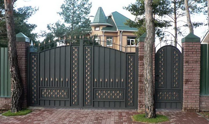Для прохода людей в воротах из металла калитку делают небольшую, обычно из тех же материалов, что и забор.