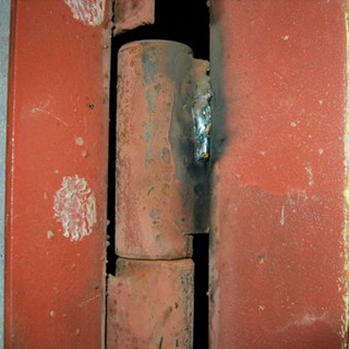 Так как труба рамы имеет толщину стенки 1,5—2 мм, для усиления крепления под каждую нижнюю часть цилиндрической воротной петли нужно приварить отрезок уголка с полкой 25 мм. Такое же усиление потребуется и для стойки, если она сделана из профилированной трубы с толщиной стенки 2 мм.