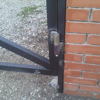Для того чтобы стопорить ворота в закрытом, а при необходимости и в открытом положении, понадобятся задвижки в виде шпингалета — по одной на каждую створку (если у ворот не предусмотрена верхняя перемычка) или по две (если ворота сверху перекрыты). Задвижки можно купить готовые, а можно сделать самостоятельно, приварив к раме отрезки оцинкованной трубы 1\2 и вставив в нее стальной пруток диаметром 12 мм с загнутым концом. В землю в соответствующем месте нужно вбить или забетонировать другой отрезок трубы, для того чтобы шпингалет прочно фиксировал створку.
