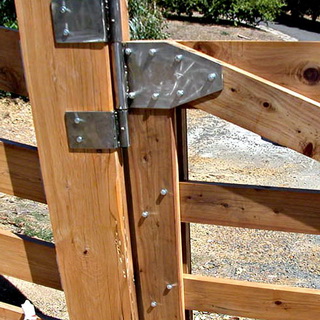 Она почти не отличается от аналогичного способа укрепления ворот в стиле ранчо. Состоит она из металлического прутка 08—10 мм, соединенного одним концом с неподвешенной стороной створки, а другим — с удлиненной стойкой ворот.