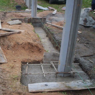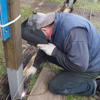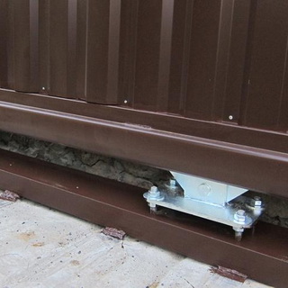 Если ворота будут устанавливаться в уже имеющийся забор с бетонными или кирпичными столбами, то еще на этапе проектирования следует учесть размеры боковых опорных стоек, которые нужно будет прикрепить к заборным столбам. Такие стойки изготавливают из профилированной трубы 60 х 60 х 2 мм или 40 х 60 х 2 мм. Если есть возможность вплотную к столбу вырыть котлован, стойки желательно забетонировать, приварив к ним внизу отрезки арматуры или полосы. Стойки строго вертикально выставляют с помощью отвеса или уровня и крепят к столбу с помощью анкеров, после чего заливают котлован бетоном. Если же забетонировать стойки невозможно (например, из-за имеющегося фундамента, который нежелательно взламывать) придется обойтись только анкерным креплением. В любом случае стойки не должны быть выше столбов — они должны располагаться на одном уровне с верхним обрезом ворот.