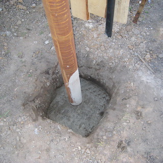 Столбы, на которых будут висеть раздвижные металлические ворота, изготавливаемые своими руками, желательно забетонировать на глубину не менее 1 м, чтобы избежать выдавливания опор при глубоком промерзании грунта.