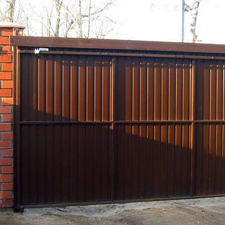 Преимущества данной конструкции становятся очевидными уже при выборе размеров и способа установки опорных столбов, которые испытывают только вертикальную нагрузку независимо от того, открыты ворота или закрыты. Поэтому и сами опорные стойки, и фундаменты для них могут иметь менее внушительные размеры, чем для обычных распашных ворот.