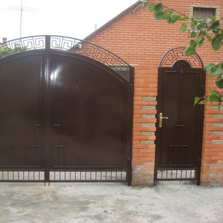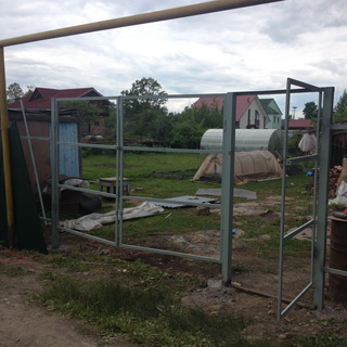 На этих фото показаны распашные металлические ворота, изготовленные своими руками: