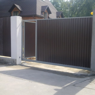 При наличии раздвижных ворот совсем не обязательно устраивать отдельную калитку. Створку таких ворот легко приоткрыть на любую ширину — для прохода с поклажей или без, для проезда на велосипеде или автомобиле.