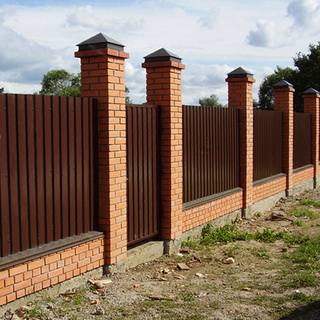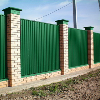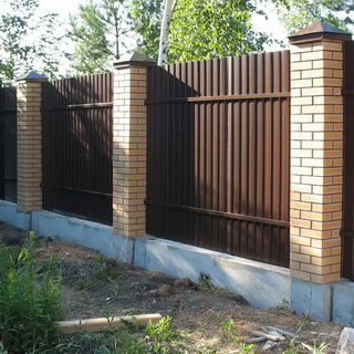 - кирпичные столбы значительно повышают конструкцию, состоящую из профнастила.