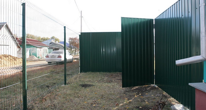 - профнастил устанавливается с фасадной части, а по сторонам – сетка.