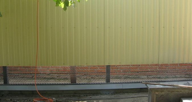 - на профнастил со всех сторон в нижней части ограждения устанавливаются сетчатые рамки;