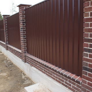 Строительство комбинированных заборов из профнастила и кирпича обладает и другими неоспоримыми преимуществами: