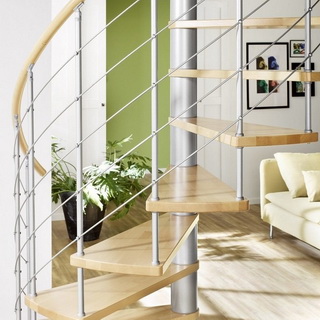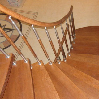 В целях экономии свободной площади дома можно заменить промежуточную лестничную площадку забежными ступенями. Даже вся лестница может полностью состоять только из забежных ступеней. Она называется винтовой (или лекальной). У такой лестницы есть ряд преимуществ. Во-первых, для ее возведения необходима меньшая площадь. Конструкция способна войти в окружность, в центре которой располагается опора. Если ширина проступей составляет 1000 мм, а подступенки одинаковы по высоте, то винтовая лестница займет примерно в 1,5 раза меньше места, чем маршевая. Однако в том случае, если высота подступенков останется прежней, а ширина проступей увеличится на 50 мм, винтовая и маршевая лестницы займут одинаковую площадь. Дальнейшее увеличение ширины проступи (радиуса лестничной конструкции) не требуется, так как экономии пространства не будет. Таким образом, рекомендуется возводить маршевую лестницу, которая более удобная, чем винтовая.