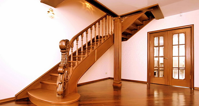 Какой бы вид лестницы вы не возводили, очень важно выбрать для неё оптимальное место в доме. Из помещений входной группы первого этажа (холла, прихожей и вестибюля) должен быть предусмотрен вход на лестницу. Например, двухмаршевая лестница с промежуточной площадкой неплохо впишется в угол помещения. Винтовую лестницу с центральной стойкой рекомендуется возводить, если в междуэтажном перекрытии имеется небольшой проем. Для обустройства поворотной лестницы на тетиве и с забежными ступенями необходимо большое пространство.