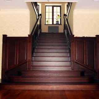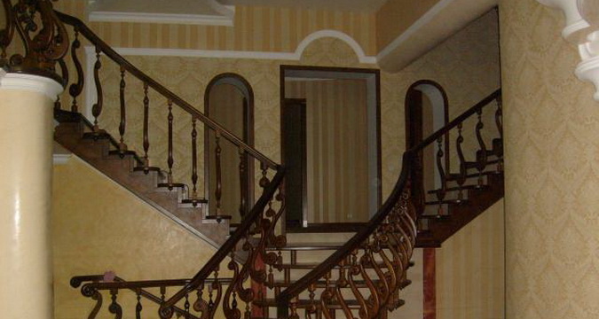 Говоря о том, какие бывают лестницы, следует выделить ещё один тип конструкций — распашные. Они имеют одну промежуточную площадку и три марша — нижний и два верхних, которые раскрываются, как бы распахиваясь в разные стороны. Распашные лестницы являются парадными, и для их устройства требуется большое пространство.