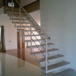 Легкие и компактные лестницы на больцах. Благодаря специальному креплению ступени и ограждение монтируются к стене, и лестница получается как бы подвешенной в пространстве;