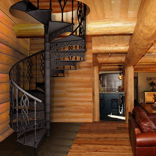 Лестничные конструкции на обсадной трубе. Они, в свою очередь, делятся на винтовые и спиралевидные;
