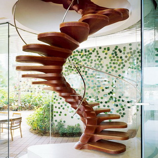 Существует возможность расширения центральной опоры винтовой лестницы, также можно полностью отказаться от нее. В таком случае получится разновидность винтовой лестницы — спиралеобразная. Если ее внутренний и наружный радиусы имеют идеальную форму, то такая конструкция называется циркульной, а если же эти величины изменяются, то лекальной.