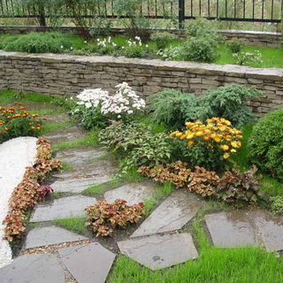 Оформление. При разбивке растительных бордюров в парках от дорожного полотна обычно отступают на ширину газонокосилки, что позволяет держать растения на расстоянии от пешеходной зоны, облегчая уход. Этот прием можно применить и на большом дачном участке. В небольшом саду в целях экономии места растения обычно высаживают вплотную к дорожкам. В любом случае с внешней стороны рабатки на границе с газоном рекомендуется сделать бордюр из камней, чтобы трава не разрасталась и не заполняла рабатку.