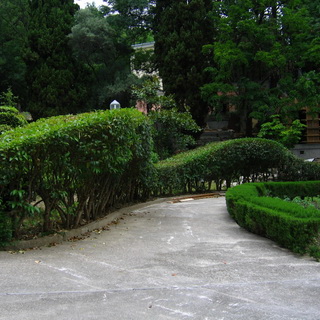В садах классического стиля дорожку можно обрамить стриженым бордюром, чаще всего их делают из самшита. Можно использовать любые низкорослые растения с плотной фактурой, главное — регулярно подстригать и сохранять их компактную форму, чтобы посадки выглядели как бордюр.