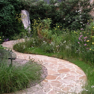 - Тропинки в «диких» уголках сада могут иметь ширину менее 60 см. Узкие дорожки не стоит обрамлять пышными цветниками.
