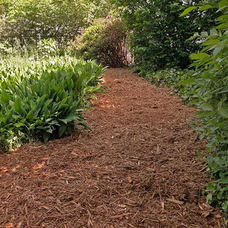 Кора хвойных деревьев. Обычно используются отходы сосны, оставшиеся после обработки горбыля. Кору для бюджетных дорожек на участке прогоняют через измельчитель, либо укладывают как есть: самые крупные куски кладут вниз, мелкие — на самый верх. Высохнув на солнце, кора сама измельчится при эксплуатации дорожки. Покрытие мало оседает и хорошо пахнет.