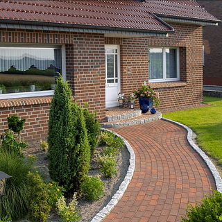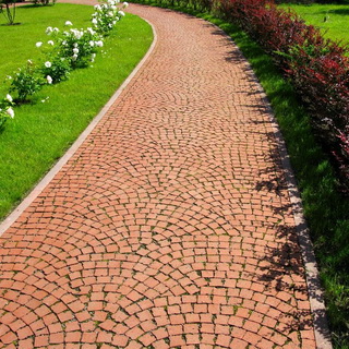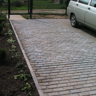 Пешеходные дорожки и площадки. Здесь для покрытия достаточно клинкерного кирпича, который выдерживает нагрузку легкового автомобиля. Интересный эффект получается при использовании фасадного кирпича ручного изготовления. Но покрытие из такого материала менее прочное, так как фасадный кирпич довольно влагоемкий и выдерживает небольшую нагрузку.