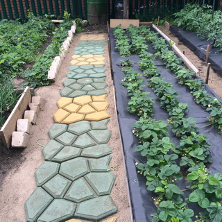 При помощи пластиковой формы для заливки легко соорудить дорожку из бетонных «камней». Форма заполняется цементным раствором. После того как бетон схватится, форму снимают и передвигают на новое место.