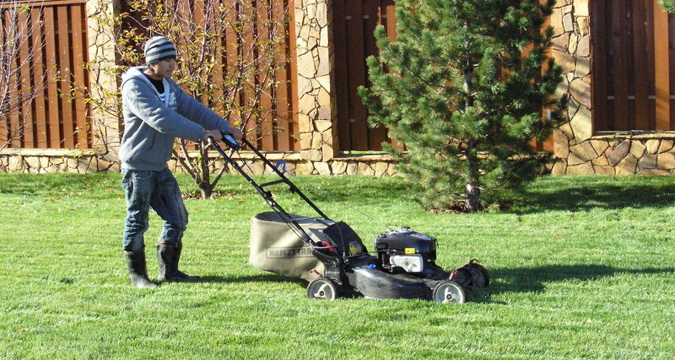 Для перового покоса нужно выбрать время, когда земля еще влажная, а трава подсохла, иначе есть риск повредить поверхность. Ножи косилки должны быть острыми, как бритва. Высота первого покоса — не ниже 6 см, то есть нужно срезать только верхушки. В первое лето по газону лучше не топтаться и не допускать пересыхания.