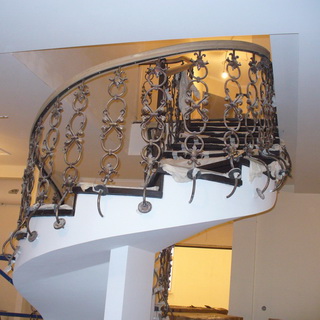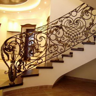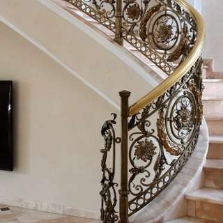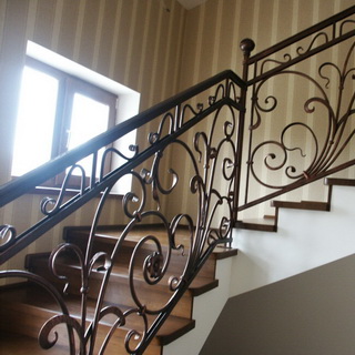 Кованые ограждения лестниц имеют изысканный внешний вид, но процесс их изготовления довольно сложен. Они производятся по индивидуальному проекту методом художественной ковки. По желанию заказчика возможно создание любых вариантов отделки, разных стилей (от легких ажурных конструкций до крепких и массивных).