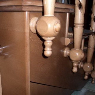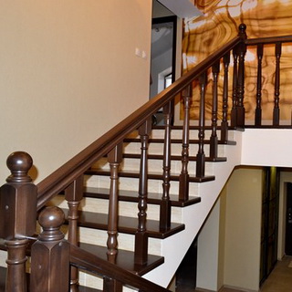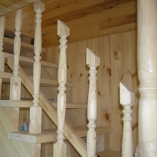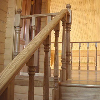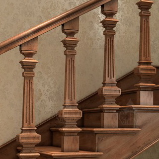 Деревянные балясины являются, пожалуй, самым распространенным видом деревянных ограждений лестниц. Их установка на лестницу осуществляется в нижней и верхней части конструкции. Внизу балясины монтируются в нижнюю ступень, а в верхней части они закрепляются в деревянный поручень и соединяются между собой столбами.