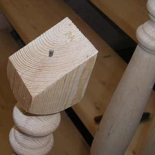 Таким образом, необходимо закрепить все верхние столбы и столбы балюстрады. Крепление нижних столбов можно производить на саморезы или евровинты, закрутив их под углом.