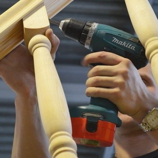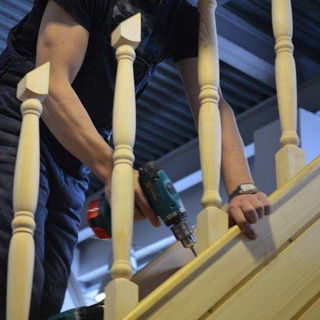 Перед тем как крепить элементы ограждения лестницы (балясины, поручни и другие детали конструкции) необходимо сначала зашпатлевать, отшлифовать и залакировать. После этого нужно сконструировать приспособление для дальнейшего сверления осевых отверстий в балясинах и столбах. Для этого понадобится дрель, закрепленная на щите ДСП. Для центровки рекомендуется прикрутить к ДСП дубовый брусок, в котором заранее выполнено отверстие для сверла.
