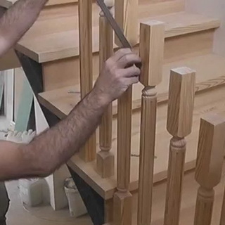 Чтобы установить ограждение лестницы, сначала рекомендуется натянуть шнур по верху крайних стоек. Затем нужно установить балясины, выровняв их по шнуру. Далее необходимо убедиться, что все балясины расположены вертикально, после чего следует прикрепить их к ступеням.