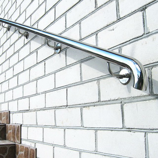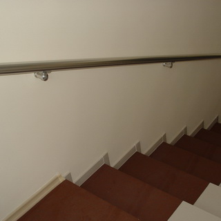 Крепление поручня к стене производится в том случае, когда лестница расположена возле нее. При таком варианте стойки не понадобятся, установка поручней будет проходить с помощью специальных кронштейнов.