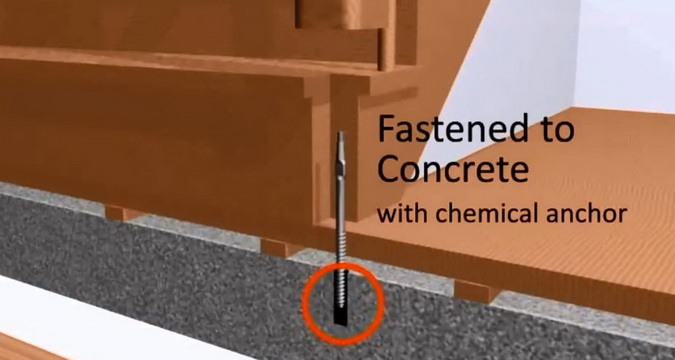 В данном случае крепление производится на химические или жидкие гвозди, которые представляют собой клеящую субстанцию, глубоко проникающую в бетон. Такой химический анкер характеризуется довольно прочным креплением.
