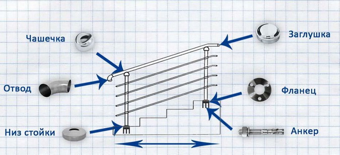 Основными элементам ограждения лестниц являются перила, поручни и балясины.