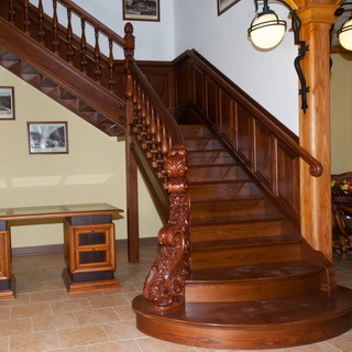 Так, например, винтовые пролеты не оформляются подобным образом, потому что перемещение по такой лестнице требует большей сосредоточенности на самом процессе подъема или спуска.