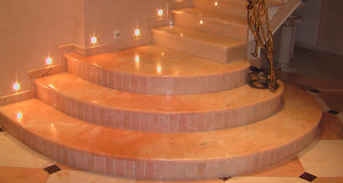 Если лестницы имеют забежные ступени, то их следует оклеивать отдельными фрагментами.