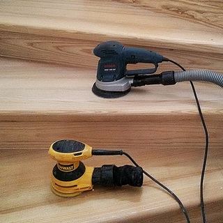 Шлифовка перед отделкой лестницы