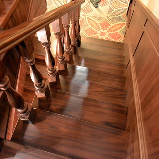 При этом для декора лестницы, если позволяют финансы, могут применяться экзотические породы дерева, такие как тик, махагони, кипарис и т. п. Для выявления текстуры дерева и придания нужного цвета и оттенка необходимо использовать лаки и специальные тонирующие составы.