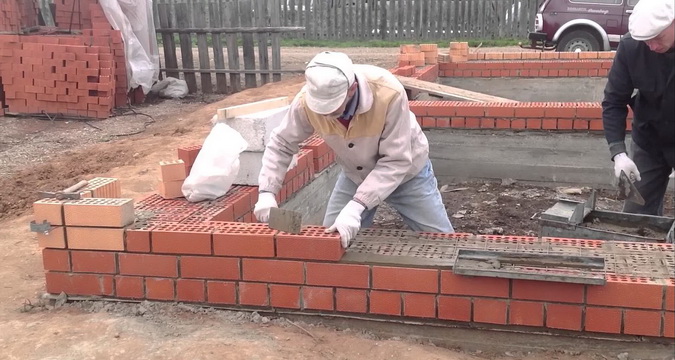 - Начинать выкладывать ряд всегда нужно с кладки наружных кирпичей.