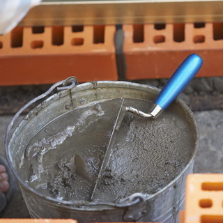 Раствор для кладки кирпича в бане перед использованием необходимо тщательно перемешать, чтобы получилась однородная масса. Наносить раствор на стены нужно ровным сплошным слоем толщиной 20-25 мм, что при укладке кирпича позволит свести к минимуму его выравнивание кельмой.