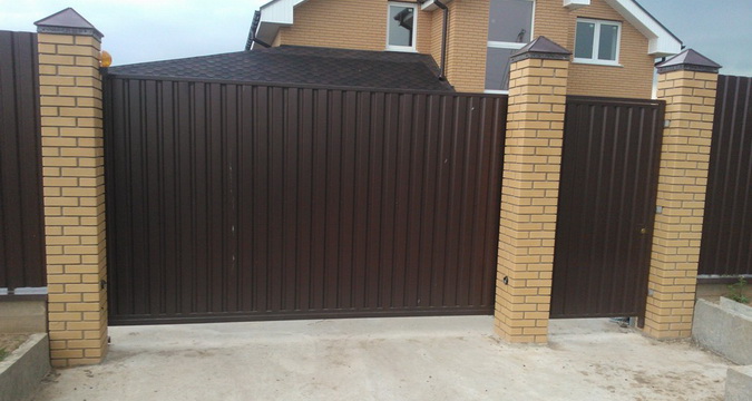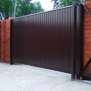 Чаще всего при монтаже откатных ворот, устанавливаемых своими руками, используется облицовка из профнастила. Этот материал служит долго, поскольку в его производстве используется оцинкованная сталь. Он хорошо выдерживает нагрузки и давление, его используют и для создания кровли, и для устройства ворот. Для ворот следует выбирать более легкие варианты профнастила, который не должен утяжелять конструкцию. Кроме того, необходимо учитывать, что при использовании данного материала будет слабой защита соединений. Здесь будут образовываться ржавчина и серьезные повреждения, которые со временем могут привести к ухудшению качества всей конструкции.