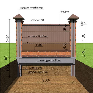 Для стальных опор нужно использовать профильные трубы сечением 40 х 25 мм, при этом листы профнастила могут быть высотой до 2 м.