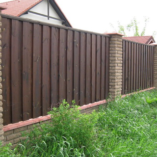 Заборы из дерева и металла нуждаются в защите от воздействия влаги. Чтобы предупредить возможное гниение деревянных сооружений, можно обработать их креозотом. Это надежное средство защиты, но следует иметь в виду, что креозот окрашивает поверхность в кирпичный цвет. Возможно, это как раз то, что требуется для гармоничного сочетания архитектурных элементов на всем участке. В противном случае лучше выбрать другое средство. Кроме того, покрытую ранее креозотом поверхность изделия в дальнейшем нельзя будет перекрасить, поскольку креозот всегда проступает сквозь любую краску.
