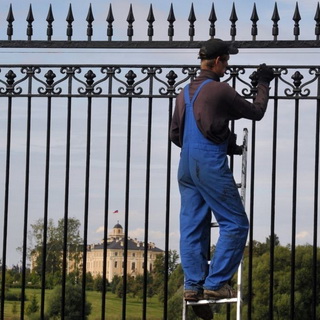 После установки покраска забора своими руками выполняется с помощью кисти, пульверизатора или малярного валика. Кованый забор покрасить несложно, чего нельзя сказать о сетке-рабице, и чем мельче ее ячейки, тем труднее их будет прокрашивать. Сетчатый забор лучше всего красить кистью. Малярный валик подойдет для окрашивания сплошных поверхностей — например, металлических листов, сплошных секций или сплошного деревянного забора. Пульверизатор также не подойдет для окрашивания сквозных конструкций, поскольку большая часть краски будет расходоваться понапрасну. Это приспособление подойдет для окрашивания крупных деталей или сплошного забора.