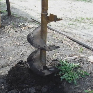 Можно также воспользоваться садовым буром, тогда размер скважины будет зависеть от его диаметра. Но в любом случае бурить надо максимально глубоко — на 1,5-1,7 м, т. е. на глубину промерзания грунта. Извлекаемый грунт лучше сразу вывозить в заранее отведенное для этого место. Если диаметр садового бура мал, нужно использовать земляной бур.