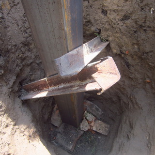 Пробурив скважину нужной глубины, следует погрузить в нее расширитель на плуг — приспособление, с помощью которого делается анкерное расширение в нижней части скважины. Это расширение делается для того, чтобы в мороз столб-опора не был вытолкнут из нее наружу, а оставался на месте.