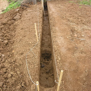 Фундамент под забор может быть и ленточным, и хотя этот способ более дорогой и трудоемкий, тем не менее он очень надежен. До того как сделать забор своими руками, сначала надо вырыть траншеи. Их глубина зависит от высоты забора: чем выше будет конструкция, тем глубже должны быть траншеи и тем тяжелее подземная часть забора, иначе он завалится, если сделан из бревен или другого тяжелого материала. Допустим, если высота забора будет 1,8 м, то глубина траншеи должна составлять не менее 0,5 м и плюс еще 20 см для песчаной подушки.