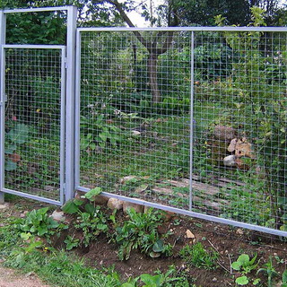 Перед тем как правильно установить такой забор, учитывайте, что сетка-рабица бывает нескольких видов — черная, оцинкованная и с полимерным покрытием. Черная рабица — самый дешевый и простой способ оградить участок. Эта сетка выглядит вполне достойно, и красить ее можно 1 раз в 3-4 года. Оцинкованную сетку красить вообще не нужно, прослужит она достаточно долго, но стоит немного дороже. Сетка с полимерным покрытием самая дорогая, но и выглядит дорого. Обычно такая сетка бывает зеленого цвета и прекрасно сочетается с зеленью на участке, не портя его общего вида. К тому же купить этот вид сетки можно в комплекте с опорными столбами, натяжным устройством и готовыми калиткой и воротами.