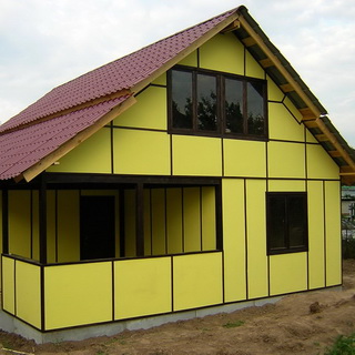Сэндвич-панели состоят из нескольких слоев различных материалов. Размеры таких панелей достаточно велики, что позволяет вести строительные работы быстро и качественно. Это одна из лучших технологий строительства частных домов. Если сравнивать кирпич и новейшие строительные конструкции, к которым относятся сэндвич-панели, то использование последних позволяет сократить сроки возведения стен в 10 раз. Панели крепятся с помощью специальных стыковых замков к заранее подготовленному каркасу. В качестве каркаса используются деревянные, металлические и железобетонные конструкции. Стыки заделываются полиуретановой пеной или алюминиевой фольгой. Демонтировать конструкции можно легко и быстро в любое время. Кроме того, с помощью сэндвич-панелей можно облицевать уже готовый дом, чтобы повысить его теплоизоляционные свойства.